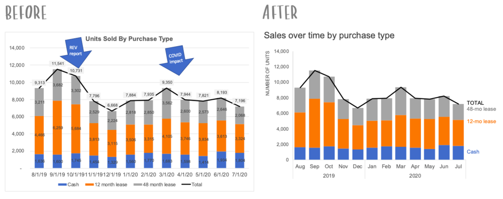 Lastly, if you happen to create papers or reports that include graphs you might want to read this blog post about how to remover the clutter from them. Removing clutter makes it easier for your readers to get the message from your graph that you want them to get. Like this before and after image from the blog post: